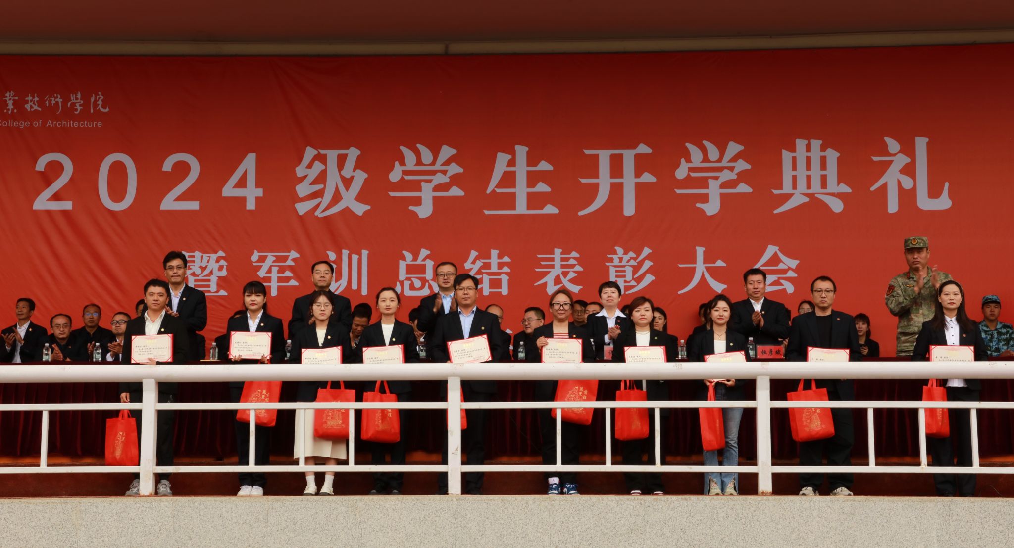 9月14日上午,学院2024级新生开学典礼暨军训总结表彰大会在风雨操场成功举行。军训团团长李欣,军训工作领导小组组长、学校党委副书记、校长党星海,军训工作领导小组副组长、党委委员、副校长高忠有,学校党委委员、纪委书记、监察专员杜彦斌,学校党委委员、副校长李维敦,各二级学院、相关部门负责人以及军训团工作人员参加大会。党委副书记许洁主持表彰大会。