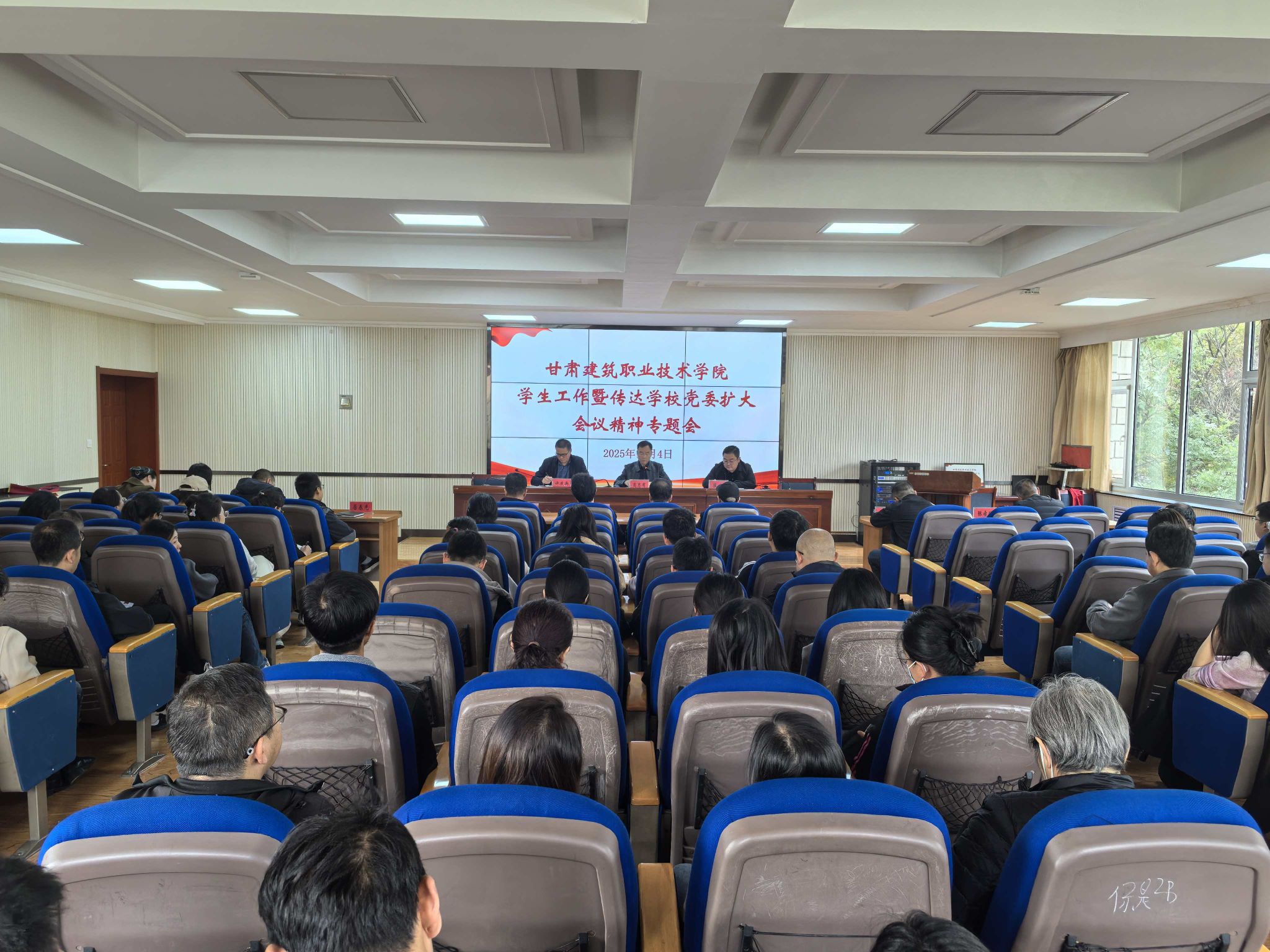 11月4日中午,学校在学术报告厅召开了学生工作暨传达学校党委扩大会议精神专题会。党委委员、副校长高忠有,党委组织部、教师工作部部长(人事处处长)崔涛,二级学院党总支书记、学生干事、一线专兼职辅导员以及党委学生工作部全体人员参加了会议。会议由党委学生工作部部长许庆兵主持。