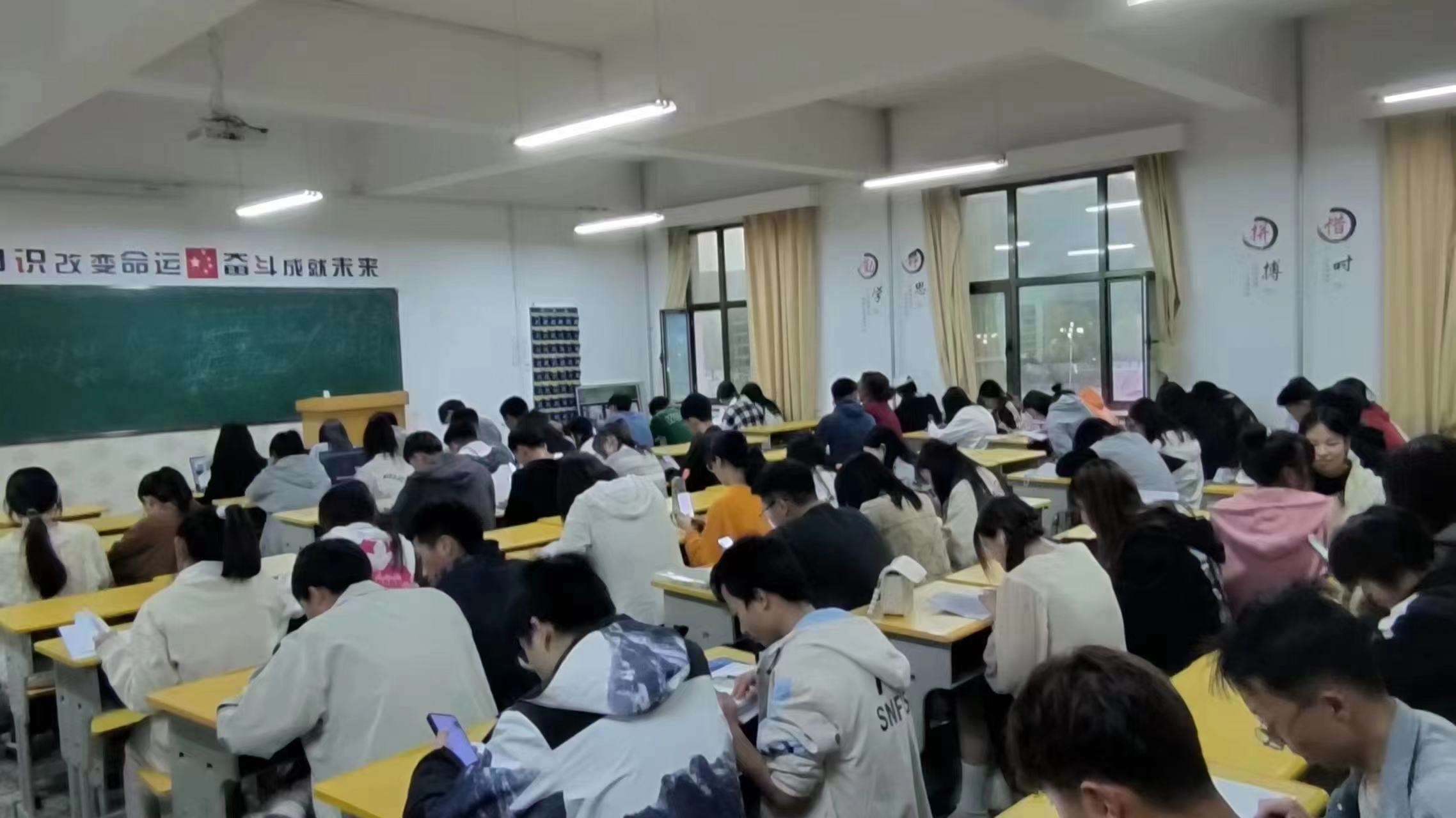 各系学生干事及辅导员担任监考教师,考试过程中各考场纪律良好、秩序井然,学生们有条不紊,仔细作答。